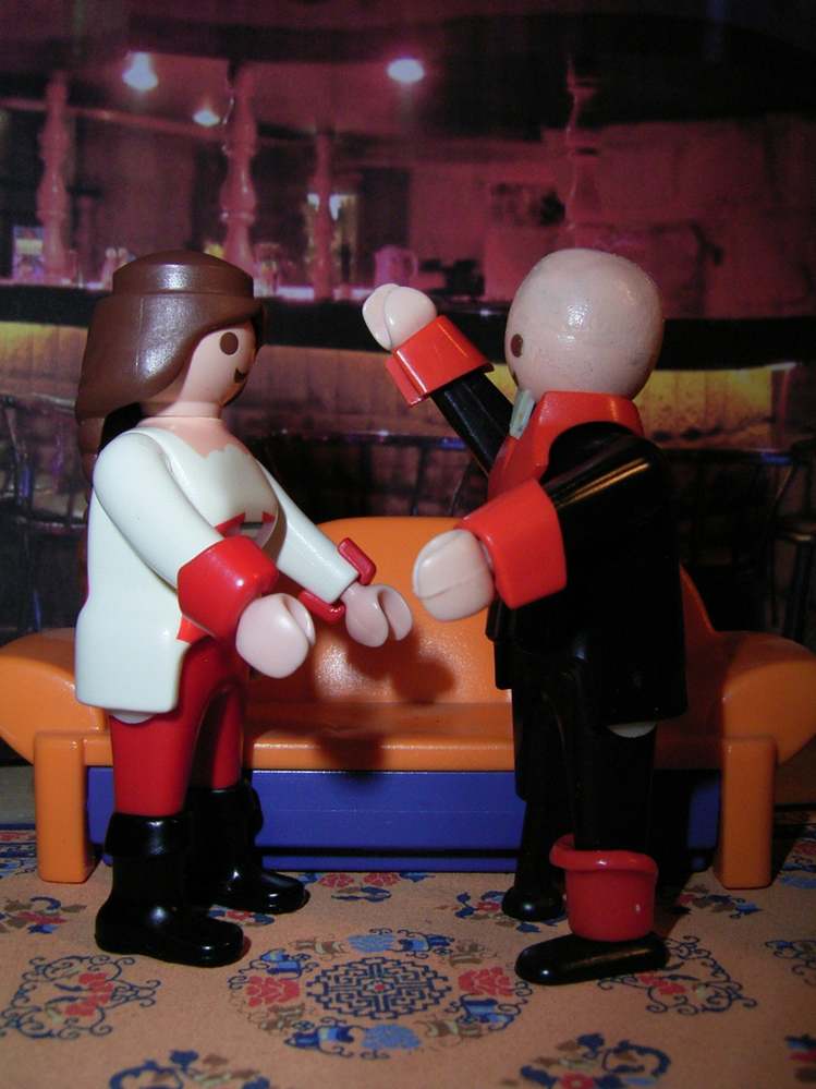 Nosi *leicht undeutlich*: "Aaah, meine liebe La Danielle (Isch darf Sie doch so nennen...), isch weiß nischt, ob isch misch glücklisch schätzen kann, dass unsere Beziehung rein geschäftlicher Natur ist. Sie verdrehen den Männern den Kopf.