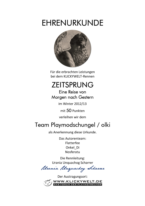 Die Urkunde vom Team Playmodschungel / olki poste ich hier.