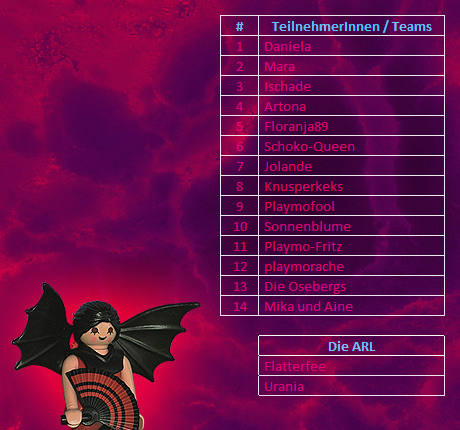 Bezüglich der TeilnehmerInnen- bzw. Teamvorstellung: Freitag, den 16. September 2016, 19.30 Uhr ist die absolute DEADLINE. Irgendwann möchte die ARL schließlich gerne wissen, mit wem sie es zu tun hat. :smile