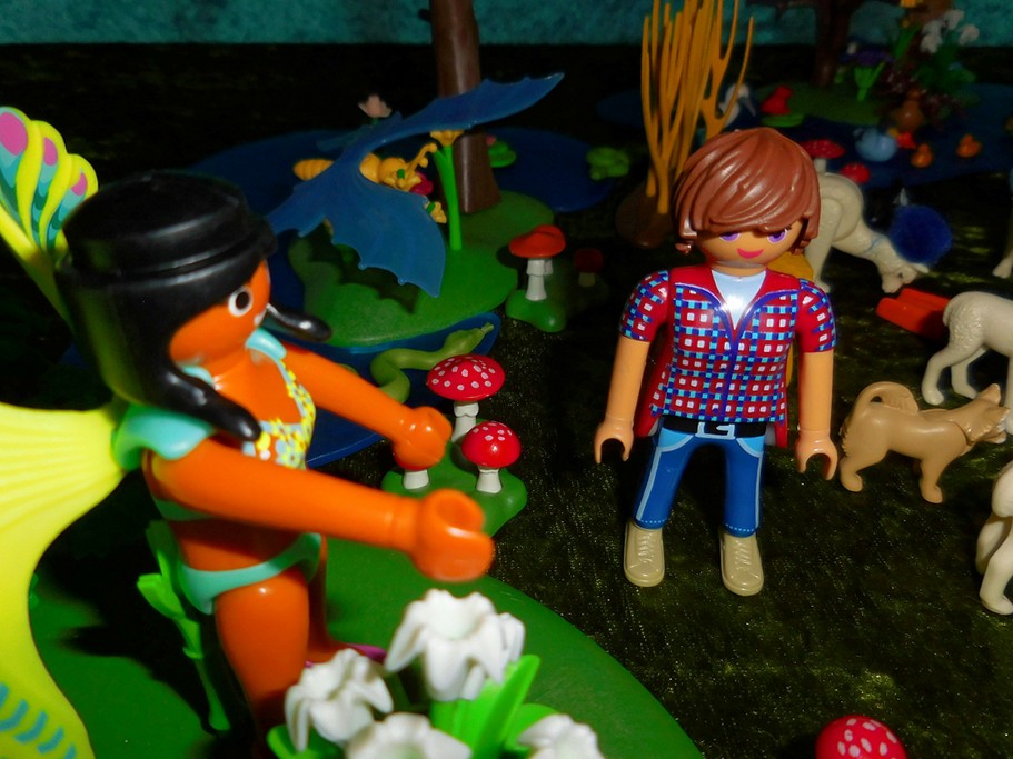 »Nein, bin ich nicht. Ich bin auf einem Schmetterling geritten«, brummt der.