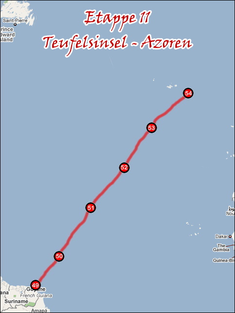 Wie dem auch sei , von Buenos Aires aus folgte man der Ostküste Südamerikas mit nörlichem Kurs. Volle 6 Felder konnten zurückgelegt werden.