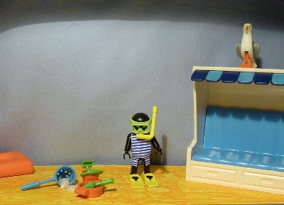 Nein, es wartet harte Arbeit auf Ihn. Der Chefetage ist zu Ohren gekommen, dass man mit Badeklamotten mächtig Kasse machen kann, deshalb Vorhang auf zum Fotoshooting...Tada äh Tri Tra Trullala