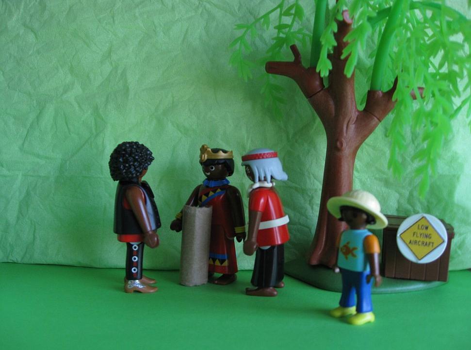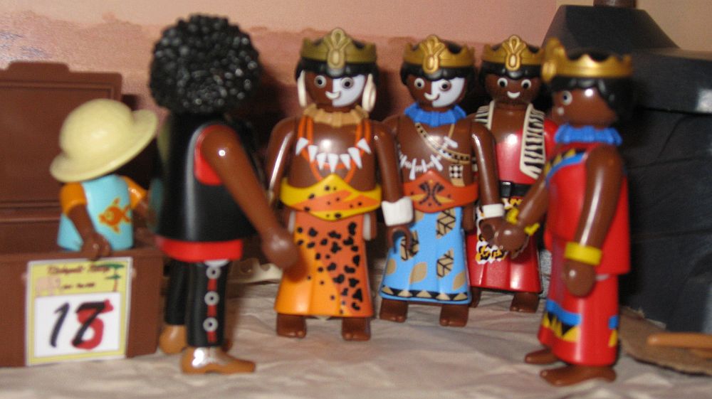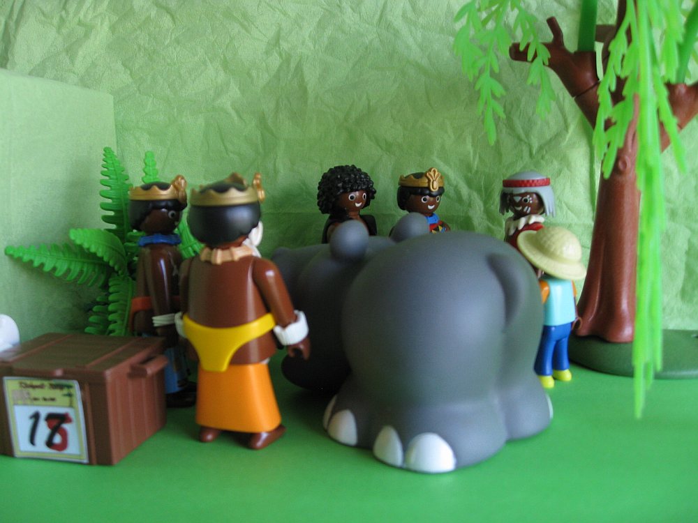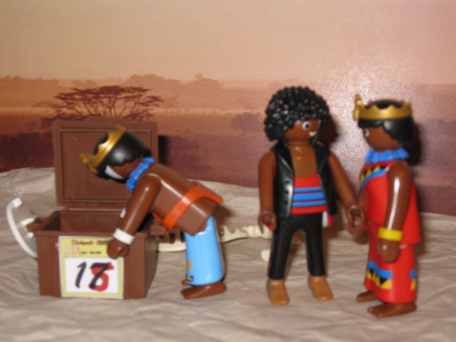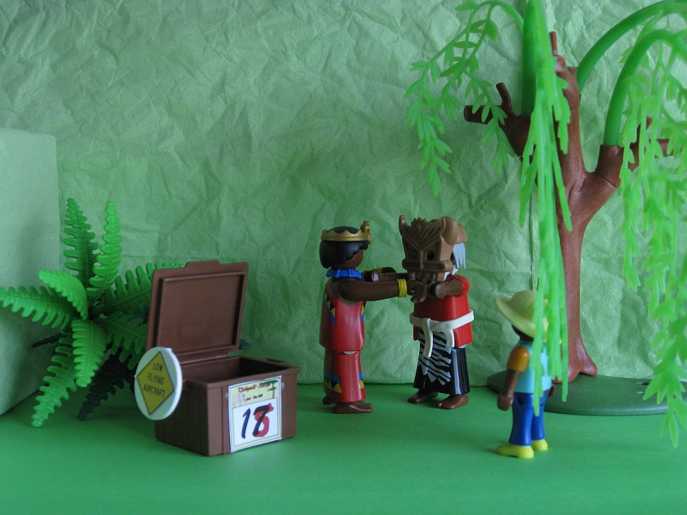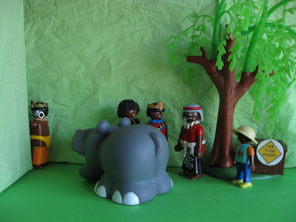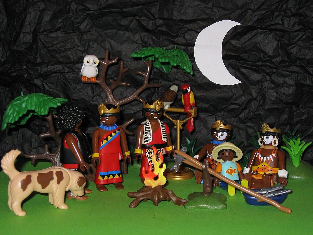 "Ah, Ramon und Usambara!" grüßt er, "Ich habe schon viel von euch gehört. Danke, dass ihr meine Kinder wohlbehalten hierher gebracht habt! Mein Name ist Umckaloabo, ich bin der Schaman- öööh, will sagen, ich bin der Tierarzt hier in der Gegend. Ja, genau. Nur der Tierarzt. Meine Praxis ist samstags nachmittags geschlossen, und da bin ich euch ein Stückchen entgegengekommen."