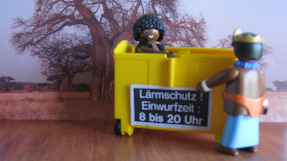 "FALSCHE ANTWORT!" brüllt Usi zurück, holt aus und wirft ihren steinharten Playmoteddy nach dem Mann.