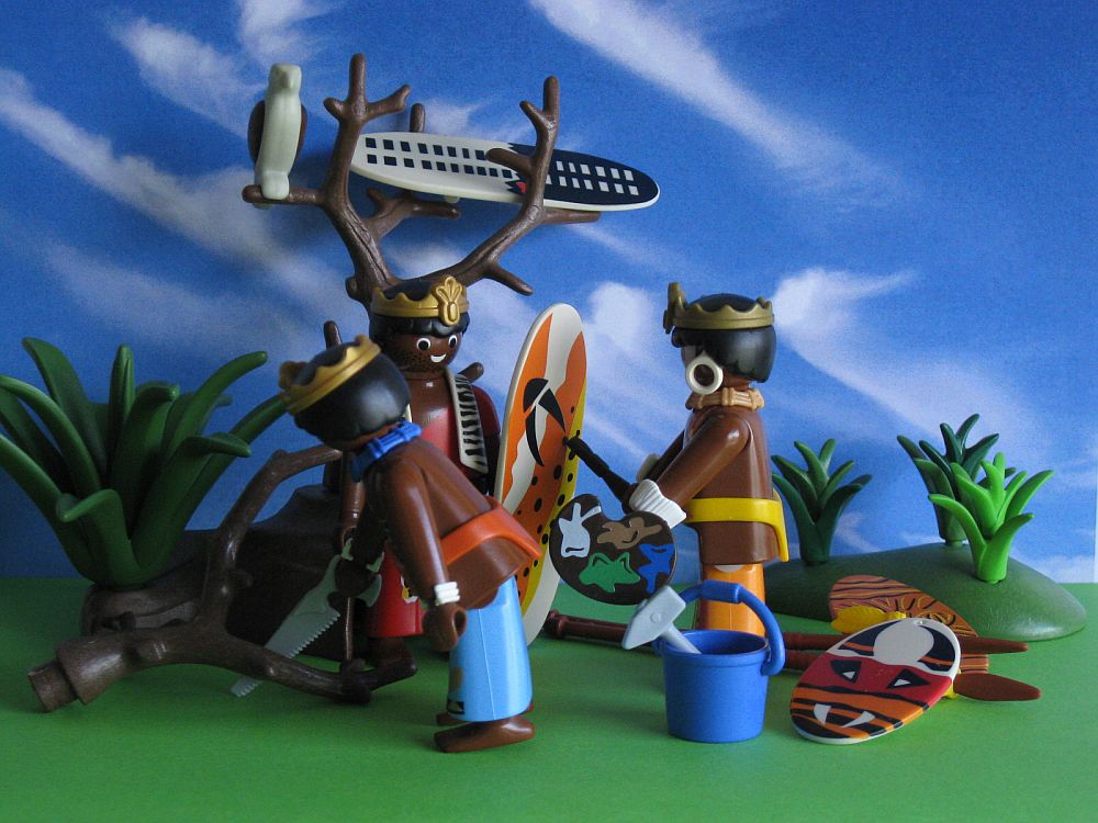 ... und die drei Oles sich mit Ramons Werkzeug neue Schilde und Speere zurechtbasteln...