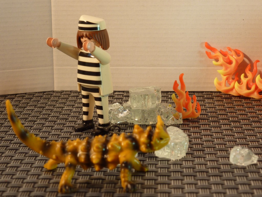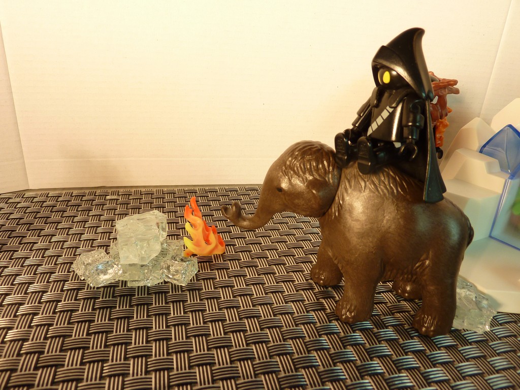 ...saugt Kroko mit seinem Rüssel mächtig Wasser auf und löscht mit dem Jedi die Brandherde.