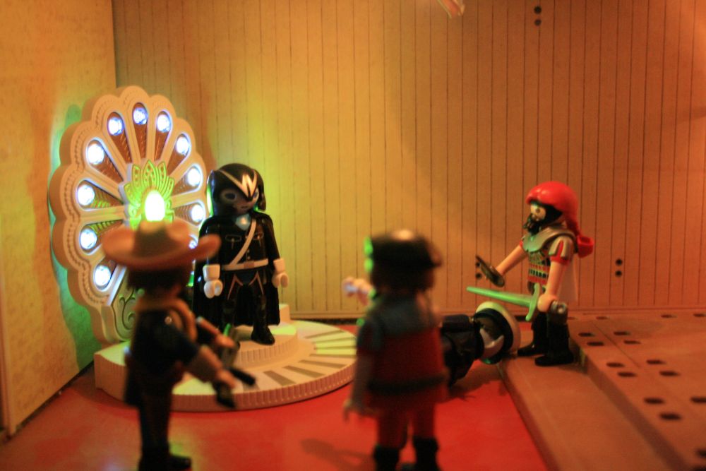 Bevor wir allerdings starteten schaute ich noch kurz aus dem Fenster und entdeckte Knusperkeks, Tribun Ryback, die von Flatterfee verabschiedet wurden. Danach wurden sie-wahrscheinlich von einem tharsischen Raumschiff- hoch gebeamt