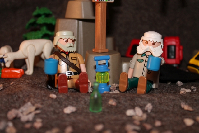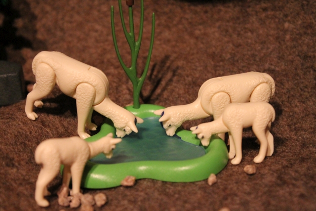 Christine führt die Alpakas zur Quelle. Sie sind ganz schön durstig und beginnen sofort zu trinken. Dominik und Matumba binden die Pferde an und fangen an das Gepäck abzuladen. Auch Stefan legt erstmal sein Gepäck ab und gönnt sich einen Schluck Wasser. [/size]
