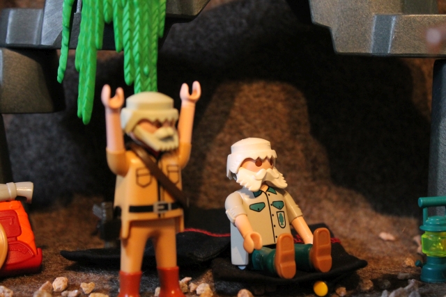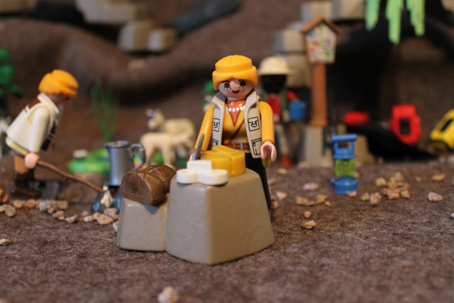 "Lasst uns hier übernachten. Das plätzchen ist gut geschützt und es gibt eine Quelle für die Tiere zum Trinken."