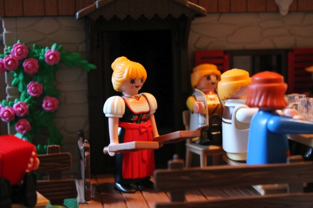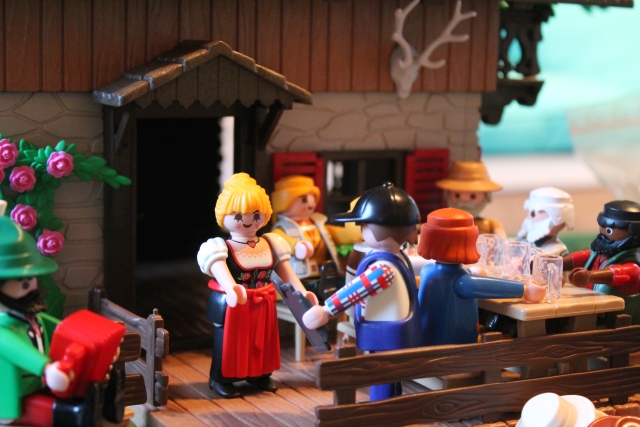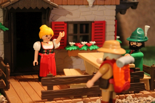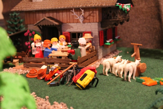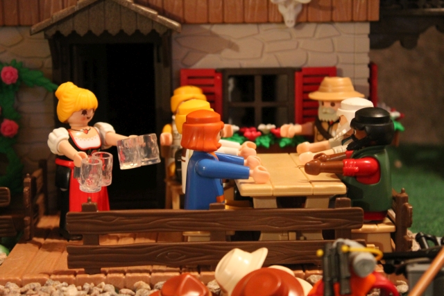 Die Pferde werden von Ihrer Last erlöst und dürfen auf der Wiese grasen. Die Alpakas werden gefüttert und trinken sich am Brunnen mit frischem Quellwasser satt. Und da kommt auch Resi schon mit den Gläsern. "So dann mal Prost." ruft sie und nimmt sich einen Humpen vom Tisch.