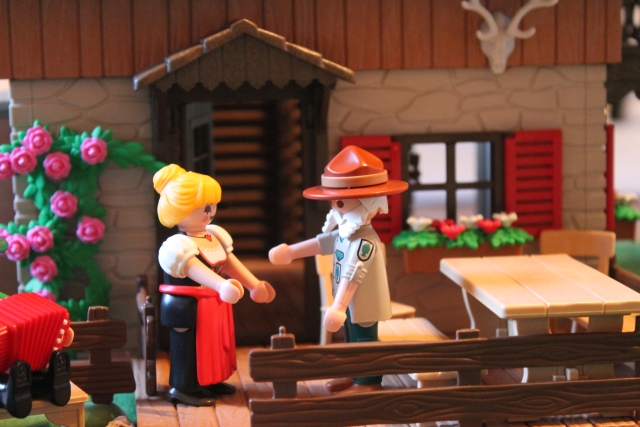 Resi stellt den hungrigen Wanderern auch eine zünftige Brotzeit auf den Tisch. ihr Freund Alois spielt währenddessen seine schönsten Lieder auf seiner Harmonika.