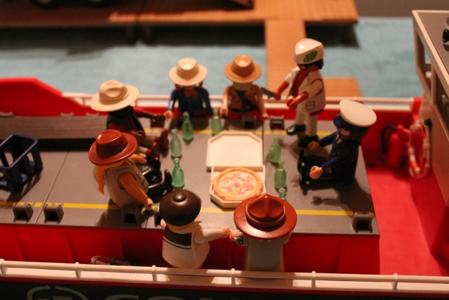 "Mille Grazie Carlo." bedankt sich der Kapitän und nimmt sich ein Stück Pizza.