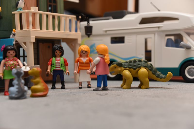 „Gebt mir eure Mäntel“, fordere ich die Dinos auf. „Ich bringe sie ins Wohnmobil und ziehe mich um – mir ist es auch viel zu warm.“