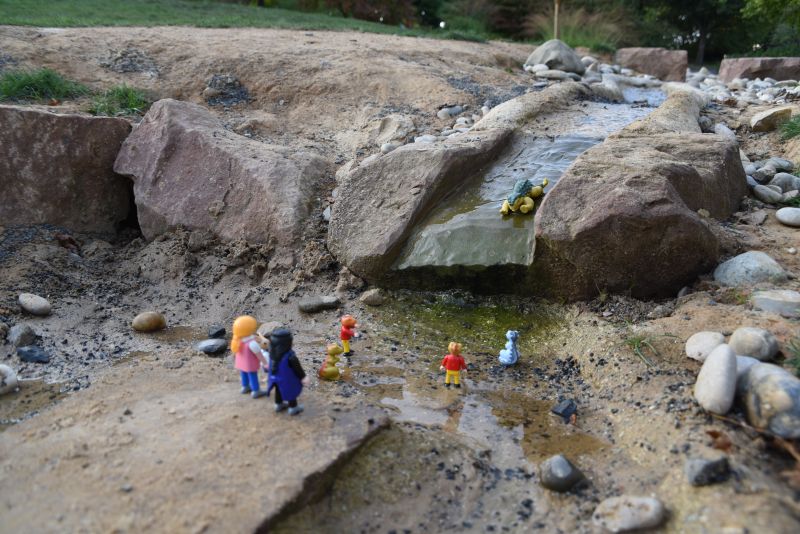 "Etwa hier entlang? Das sieht auch nicht nach Badestelle aus", meint Trüffel enttäuscht.