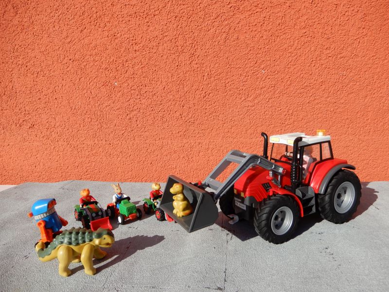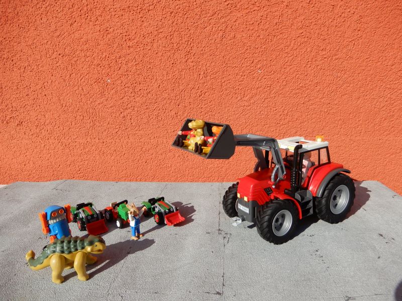 „Hier ist ein großer Traktor!“ rufe ich einen Moment später.