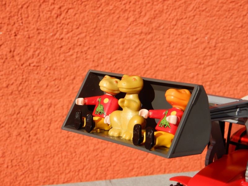 Als alle drei drinsitzen, hebe ich die Schaufel an.