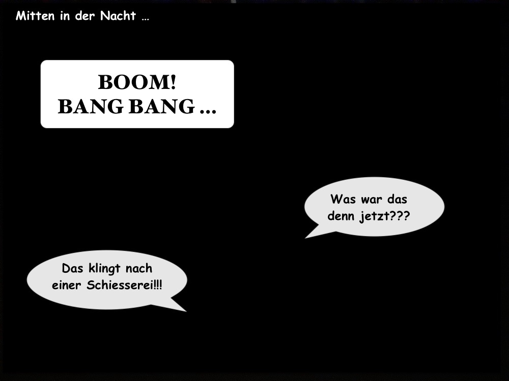 "Man, das wird immer schlimmer ... los zum Wagen ... hier fliegt ja alles durch die Gegend ..."