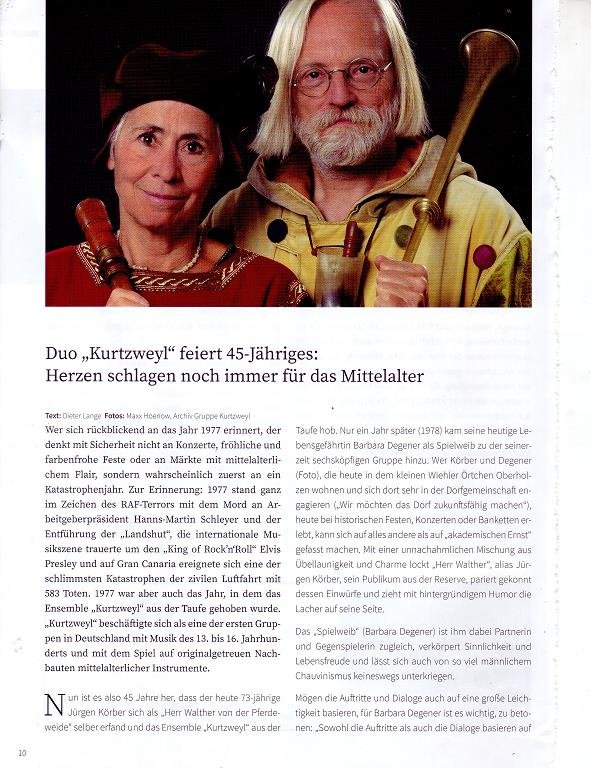 So viele Anekdoten auf nüchternem Magen? Nix da, erst einmal bei einem mittelalterlichen Kriminalbankett (z. B. "Mord am Hohlweg" mit den weisen Sinnsprüchen des Bauern Nepomuk) mit dem Duo Kurtzweyl sich gestärkt durch eine frische Füllung Deines Köppken aus der Dröppelminna (+1 Punkt).