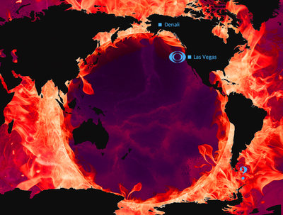 Alle Vorsichtsmaßnahmen haben nichts genützt – die Fuegos haben sich von unten durch das Denali-Eis gearbeitet und die Große Eiskugel entführt!