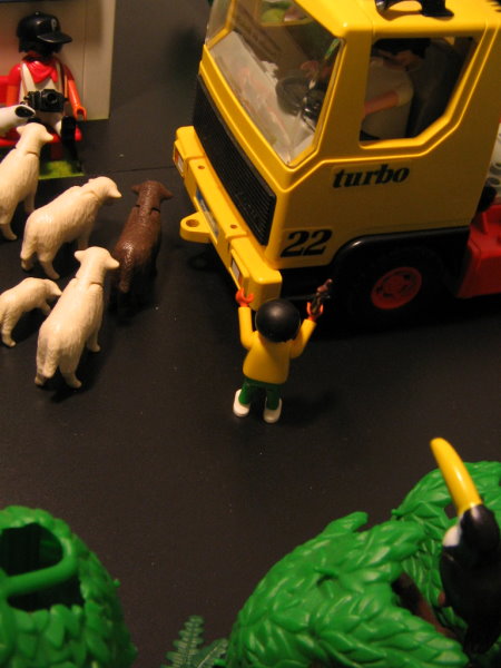 Die Schafsherde war mitten in der Straße gestanden als der Lkw, von dem das Motorengeräusch offensichtlich stammte, die kleine Anhöhe hochkam und nur durch eine Vollbremsung das Schlimmste verhindern konnte. Nämlich eine Vollreinigung des Stoßfängers und der Radhäuser. :ichdoofie