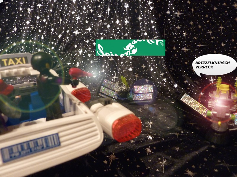 Nachdem sämtlichen Leitungen erneuert worden sind ist das Taxi wieder einsatzfähig und der Pilot macht sich so schnell aus dem Staub, als wäre ein kleiner schwarzer Außerirdischer hinter ihm her.