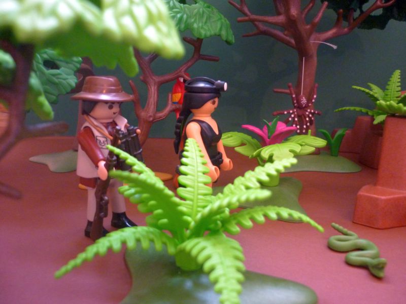 Lara und Indi streifen vorsichtig durch den dichten Wald, ständig die Schlangen, giftigen Riesenspinnen und Skorpione im Auge.