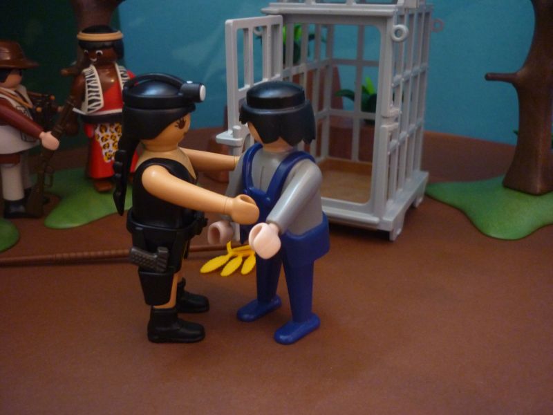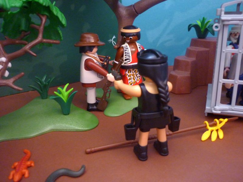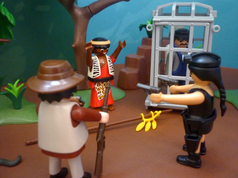 Schnell ist der Krieger entwaffnet und an den Baum gefesselt.