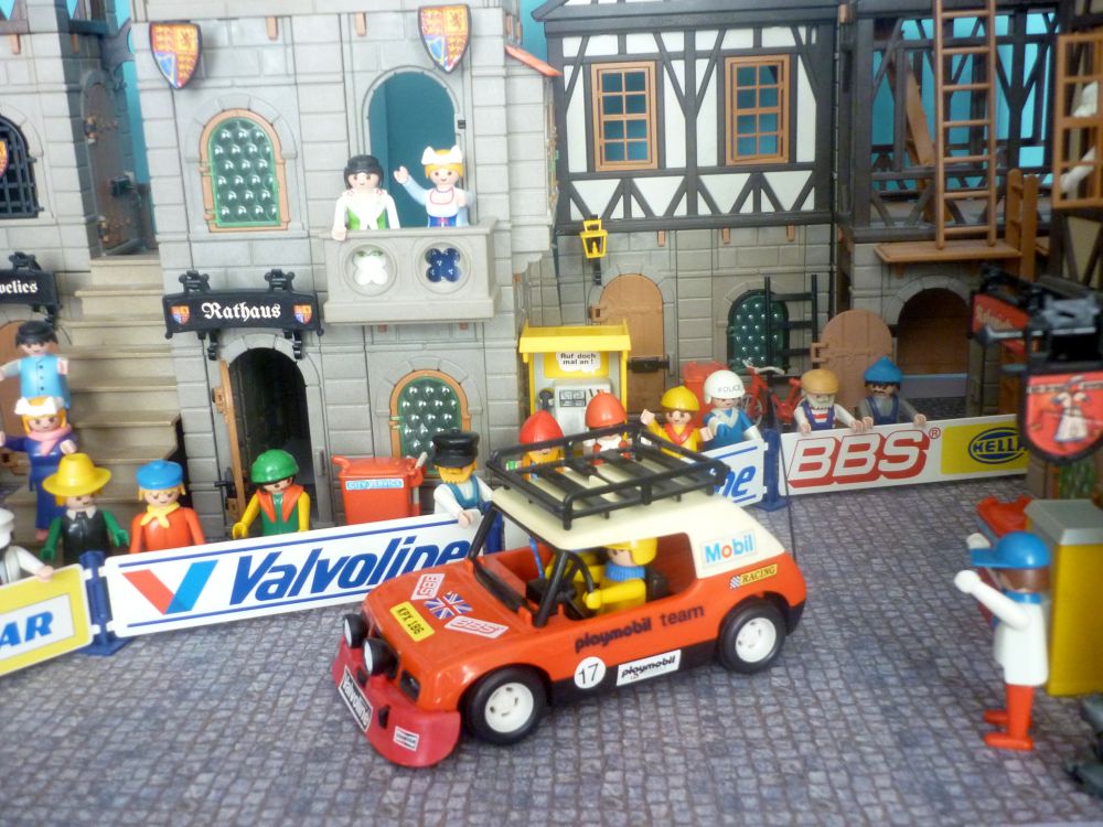Rudi und Toni sind bereits am kleinen Stadtplatz des verträumten Englischen Städtchen Maidstone eingetroffen Sämtliche Straßen wurden zur Sicherheit der Schaulustigen abgesperrt, sodaß die Wagen der Rallye ungehindert passieren können. Es dauert nicht lange, da Zeigt Rudi in die kleine Seitenstraße, wo sich bereits der erste Teilnehmerwagen nähert. Der gelbe Wagen des Belgischen Teams führt im Moment die Rallye an. Aber schon dicht gefolgt von dem Wiener Team mit Karl und Leo am Steuer. Rudi und Toni freuen sich, ihren Wagen als Zweiten zu sehen. Ganz dicht hinter den Wienern rund um Karl und Leo folgt der für England ins Rennen gehende Wagen mit den Brüdern Benson Der Stadtplatz mit all seinen kleinen Gassen erweist sich als Nadelöhr, sodaß im Moment die Position unseres Teams durch die Engländer nicht gefärdet ist.