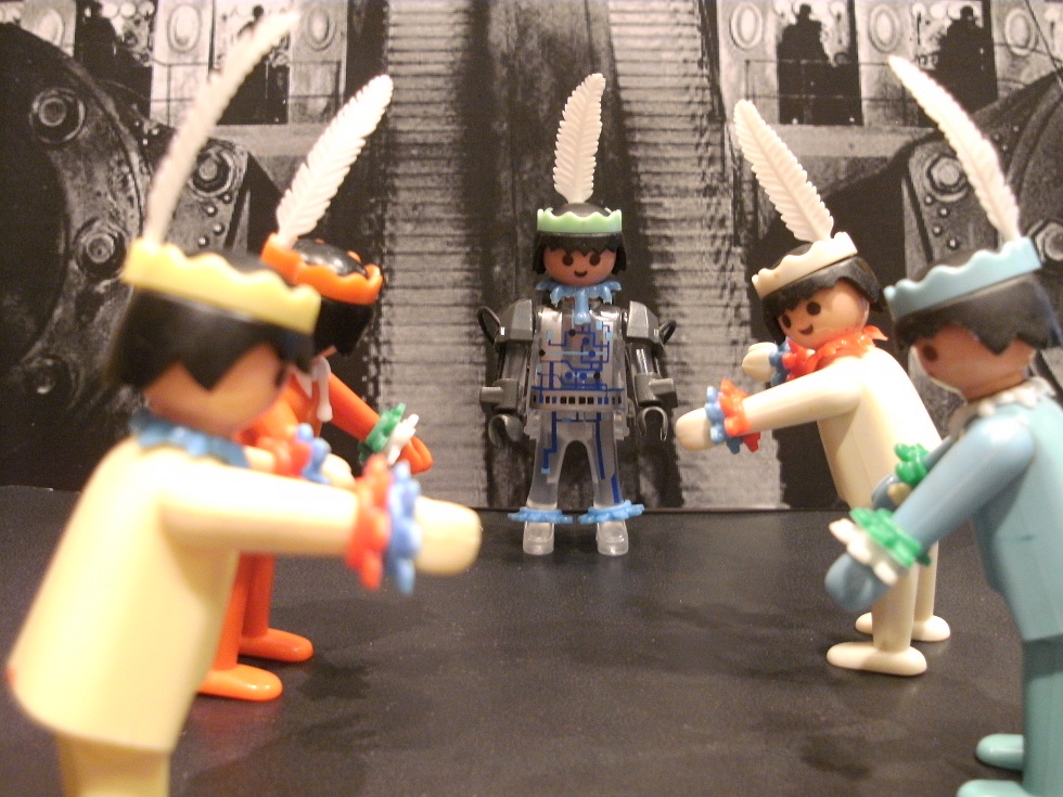 Ich war selber auch geschrocken von der Grausamkeit der Indianer und lerne sie jetzt Friedlichkeit… Ich habe mich zum Computer umgewandelt um die Stadt zu steuern sodass die Indianer hier wohnen und arbeiten konnten. Das war insofern nicht so eine gute Idee, das ich mich selber nicht mehr davon lösen konnte. Die Indianer brauchen die Stadt eigentlich nicht mehr.“