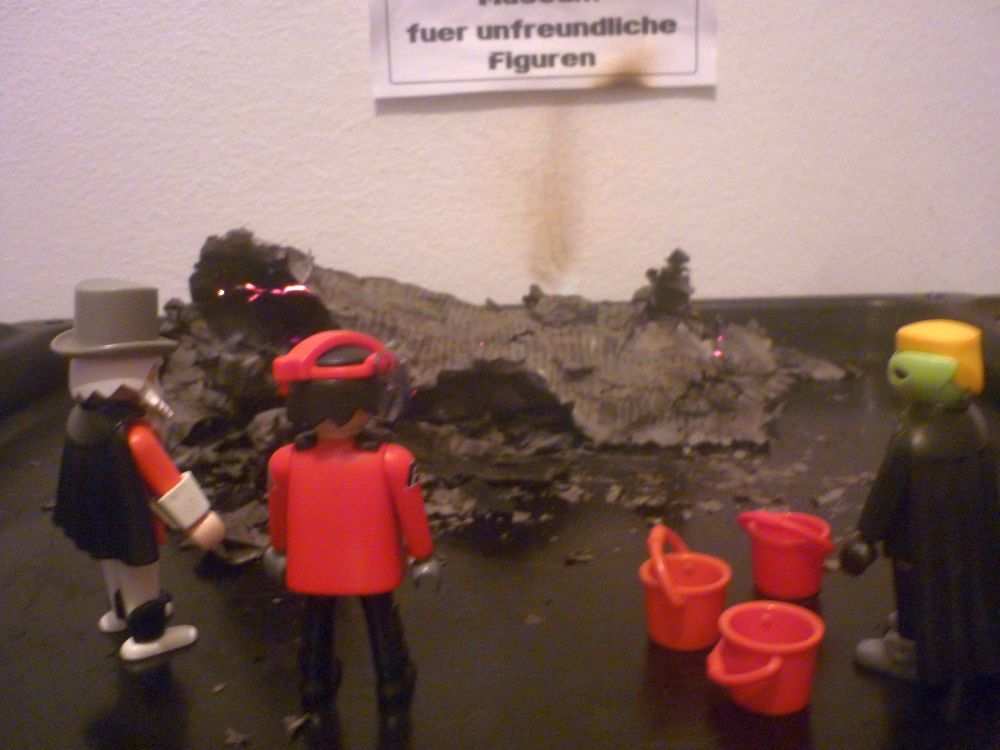 Ratlos steht der Sicherheitsbeauftragte des Museums vor den lodernden Akten und Unterlagen. Das letzte Feuer gab es vor fast 200 Jahren und so war er mit dieser Situation restlos überfordert.