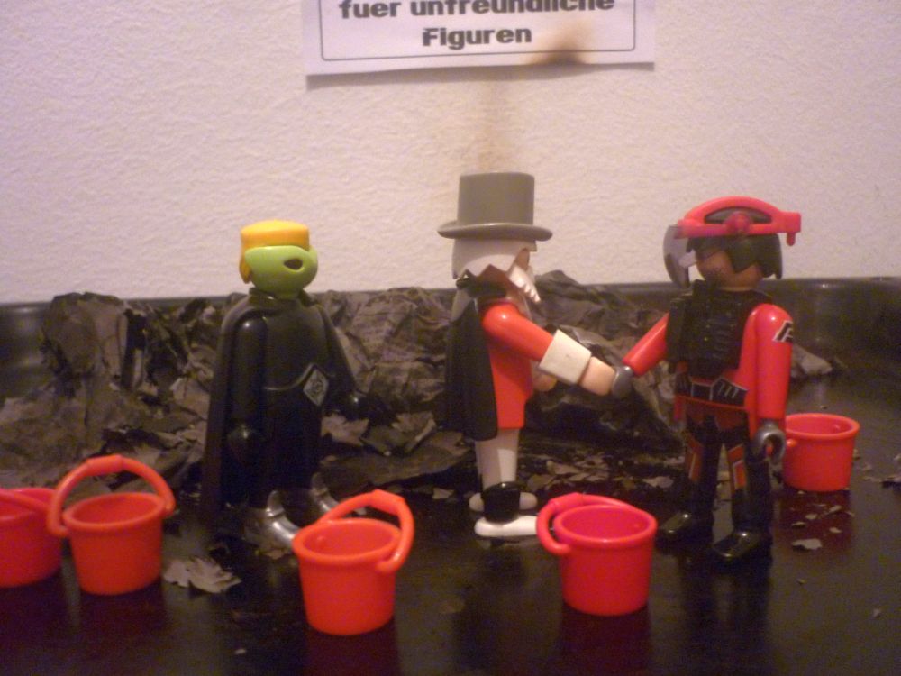 und Dr. Eusebius riß sofort das Wort an sich! "Wo sind hier dis Hydranten, Wasseanschlüsse, Trockenlöschleitungen, was auch immer um das Feuer zu löschen!"