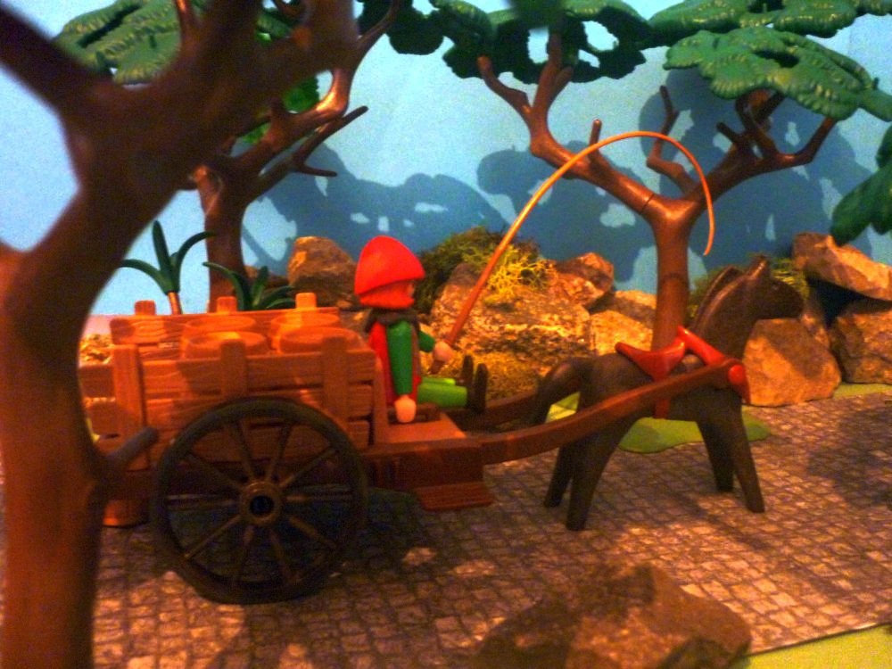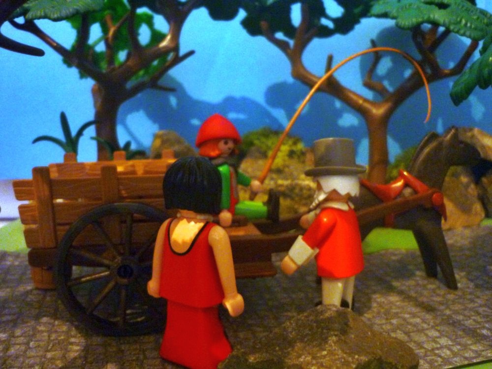 Plötzlich hören sie ein Fuhrwerk kommen