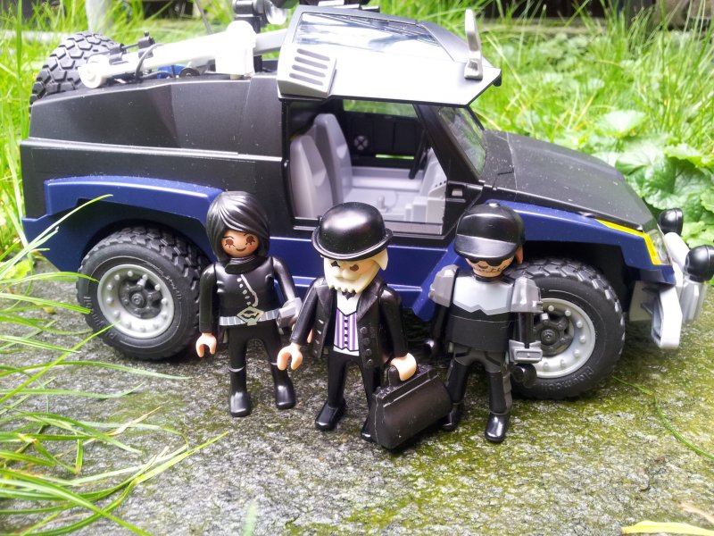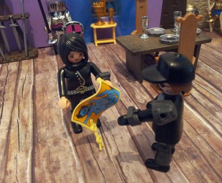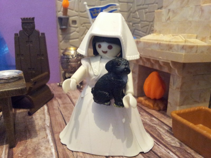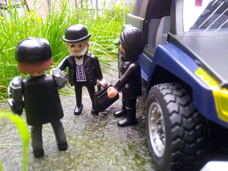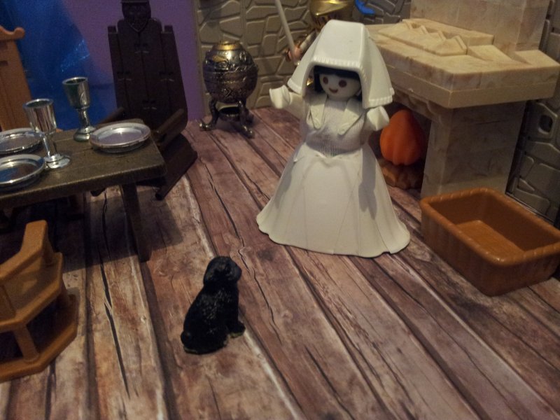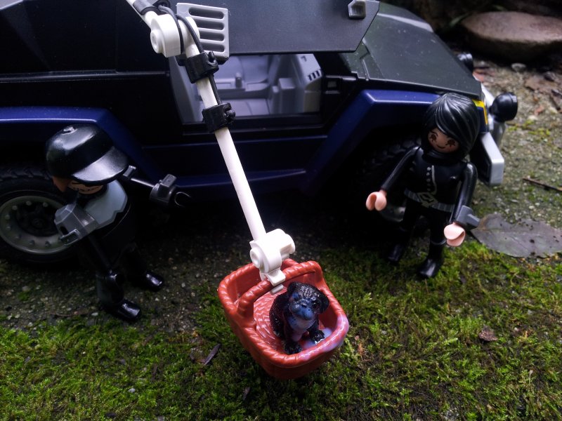 Playmolook: " Der Mops heisst Poe, er gehört Lady Leonor de Baskerville. Sie hat gefragt, ob wir ihn zu ihr nach Baskerville Hall bringen."