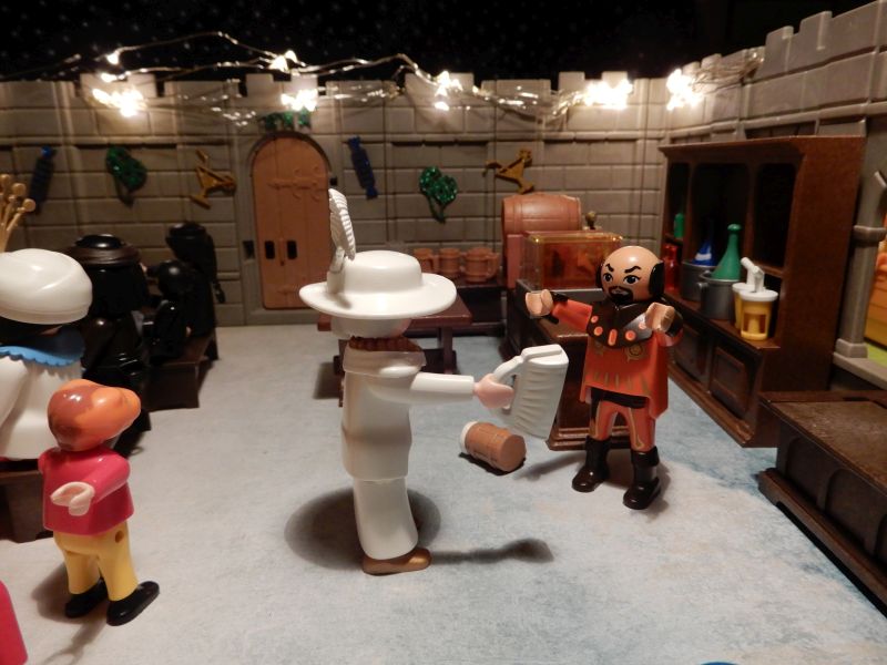 Dem Barkeeper ist es tatsächlich gelungen, einen Stuhl aufzutreiben, der Mons' Ansprüchen genügt. Als er ihr auch noch ein Getränk serviert, ist sie wieder gnädiger gestimmt.