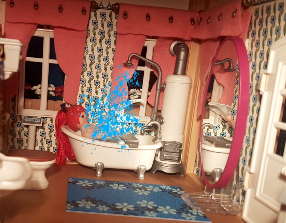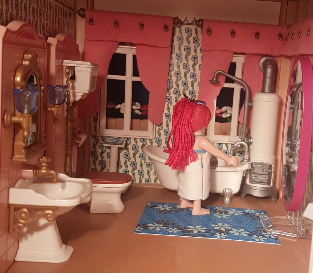 Ich gebe dem freundlichen Pagen ein Trinkgeld und er verabschiedet sich. Zuerst packe ich die nötigsten Sachen aus. Ich brauche mein Waschzeug und für heute Abend bequeme Klamotten. Danach inspiziere ich das Bad. Tja, das untere Bad sah wesentlich moderner aus. Wie alt wohl diese Armaturen sind? Selbst für 1959 machen sie einen recht altertümlichen Eindruck. Der Badeboiler wird ganz altmodisch mit Holz befeuert. Aber wenigstens wurde er bereits angeheizt und verbreitet mollige Wärme. Na, dann wollen wir mal! Ich packe noch mein Waschzeug aus. Und dann ab in die Wanne! Aaaah! Das tut gut! Das Wasser ist herrlich warm und spült die ganzen klebrigen Schokoladereste ab und tut den ganze Beulen und Schrammen wohl.