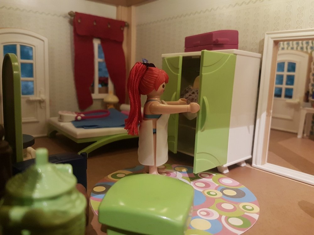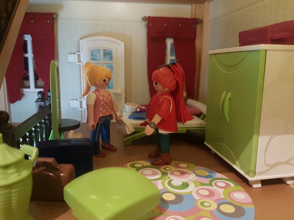 Ich schaue mich um. "Sieht gemütlich aus! Und die Farbgestaltung ist auch viel freundlicher!" "Und nebenan ist das Badezimmer. Genau wie eine Etage tiefer."