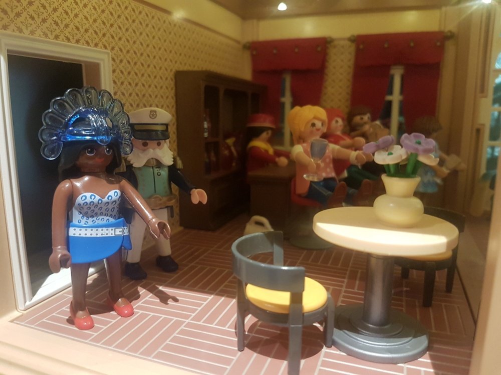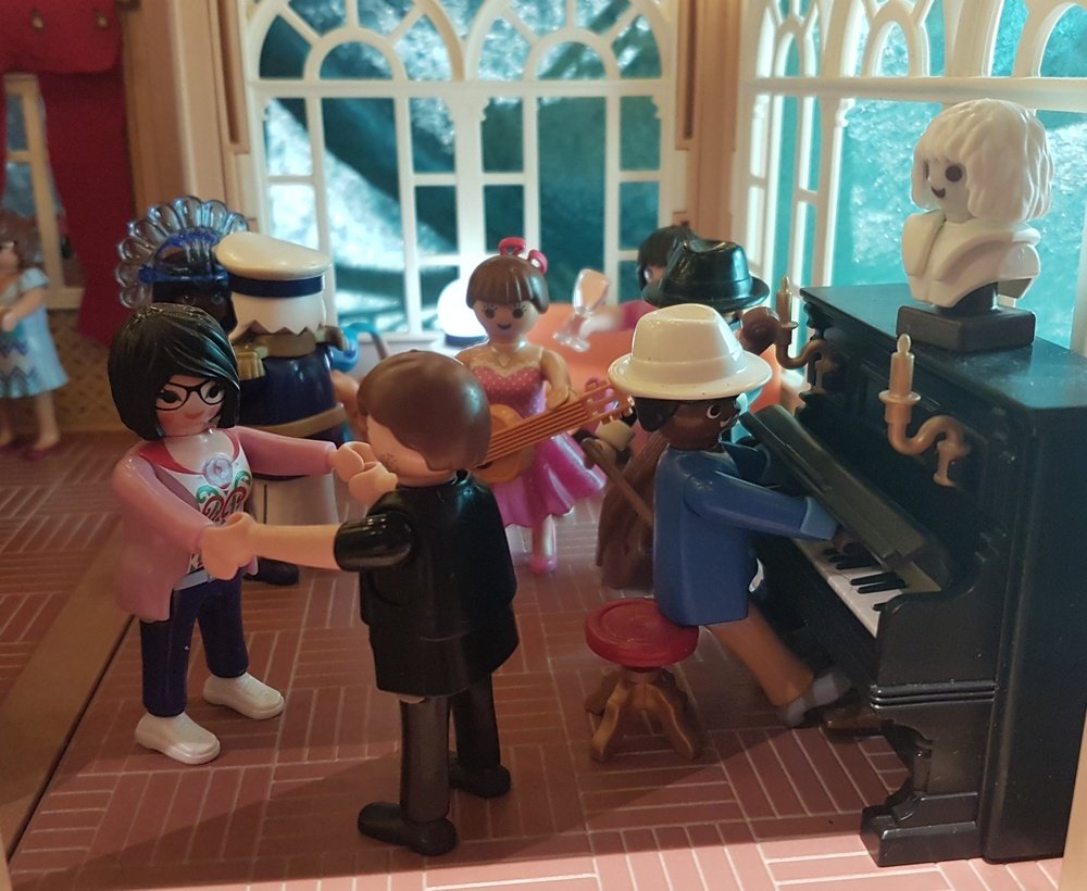 Auch der Herzog von Seefeld zeigt, was er kann, und führt Schoko Queen zum Tanz. Jetzt tanzt Erwinius mit seiner Teampartnerin. Gleich anwenden, was er gerade gezeigt bekommen hat. Aber wie immer, wenn irgendwo getanzt wird, gibt es viel mehr tanzwütige Damen mögliche Tanzpartner. Zwar hat sich auch Kraki inzwischen an der Bar eingefunden.