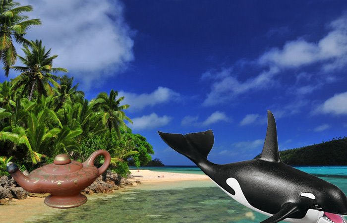 Mit einem lauten „Platsch“ landete die Wunderlampe auf dem Strand. Alles war still und friedlich… bis eine Stimme die Lampe durchdrang.