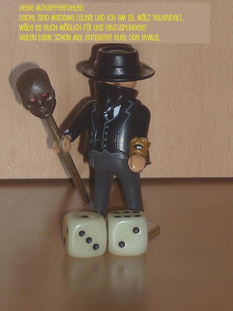 FÖD I: Kerzenglanz erhellt die makabre Szenerie. Alles Walzer. Heut' ist Totentanz! Der Antler und ich mittendrin im Treiben. Der Antler ist ein begnadeter Tänzer. Ich laß' mich von ihm führen. Ich fühl' mich dabei leicht wie 'ne Feder.“