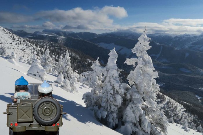 "Nein, da vorne ist Mimi mit ihrem Vater und dem Antler. Sie laufen den Berg hoch!"