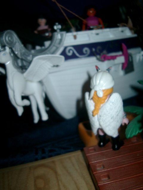 Das Orakel ließ ihm keine Gelegenheit mehr, zu fragen sondern schleppte ihn mit. Das Orakel gab an die Crew weiter, sie würde wohl nicht lange weg sein, sie sollten in der Zwischenzeit auf das Schiff acht geben.