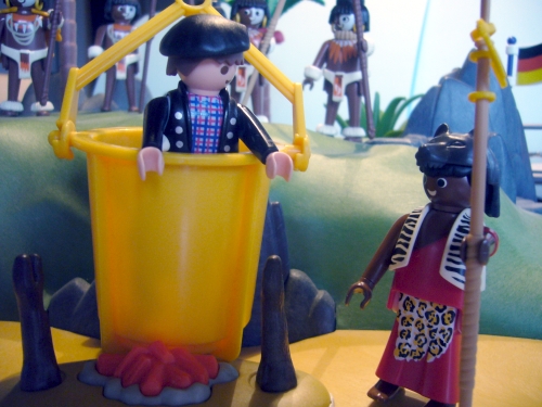 (Mensch, jetzt wird es aber richtig heiß hier drinnen. Heh, Häuptling, lass mich raus!)