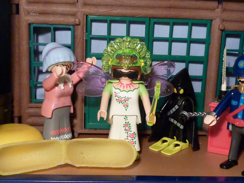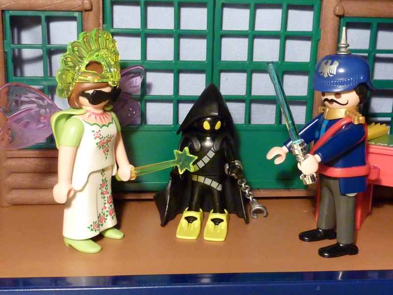"Na, den Zauberstab habe ich von Elfenzauber bekommen, die Pickelhaube hat der Junker Jörg gestiftet, in seinem Team hatte jemand eine Zweithaube dabei (der Trend geht übrigens deutlich zur Zweithaube)
