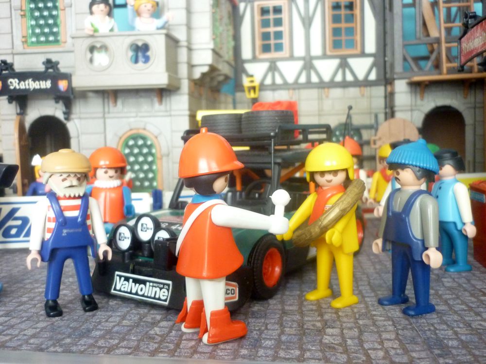 Sofort laufen sie zu ihren drei Helden, Karl dem Fahrer, Leo dem Copiloten und ihrem treuen Wagen.