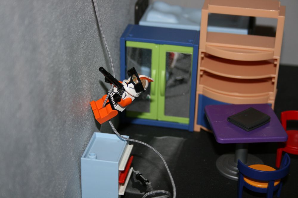 ein ganz normaler Aufenthaltsraum im Playmobil-HQ in Zirndorf... oder doch nicht? Denn plötzlich fällt von oben ein Seil herab und ein, ja was is das eigentlich??