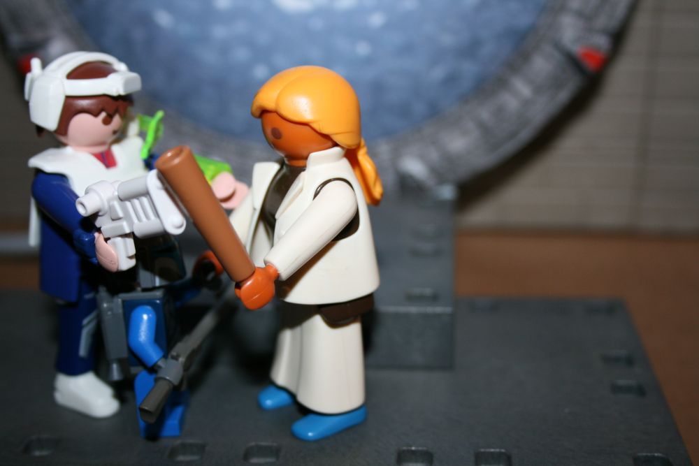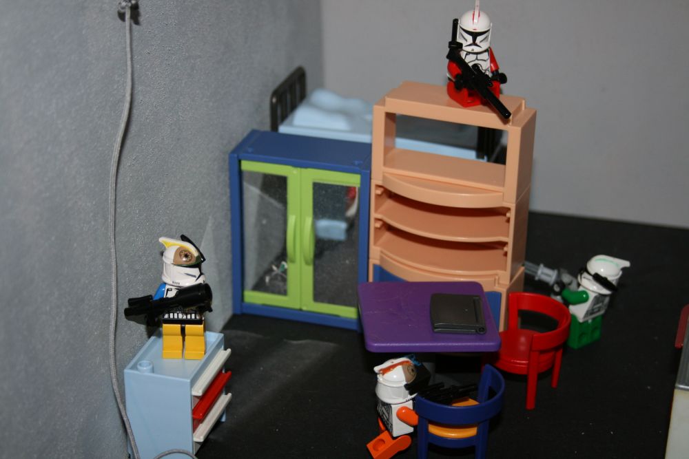 Beide: LEGOMENSCHEN Ich: Das sind nicht nur irgendwelche Lego-Männchen, das sind Republic Commandos, die besten Spezialeinheiten dies gibt Knusper: