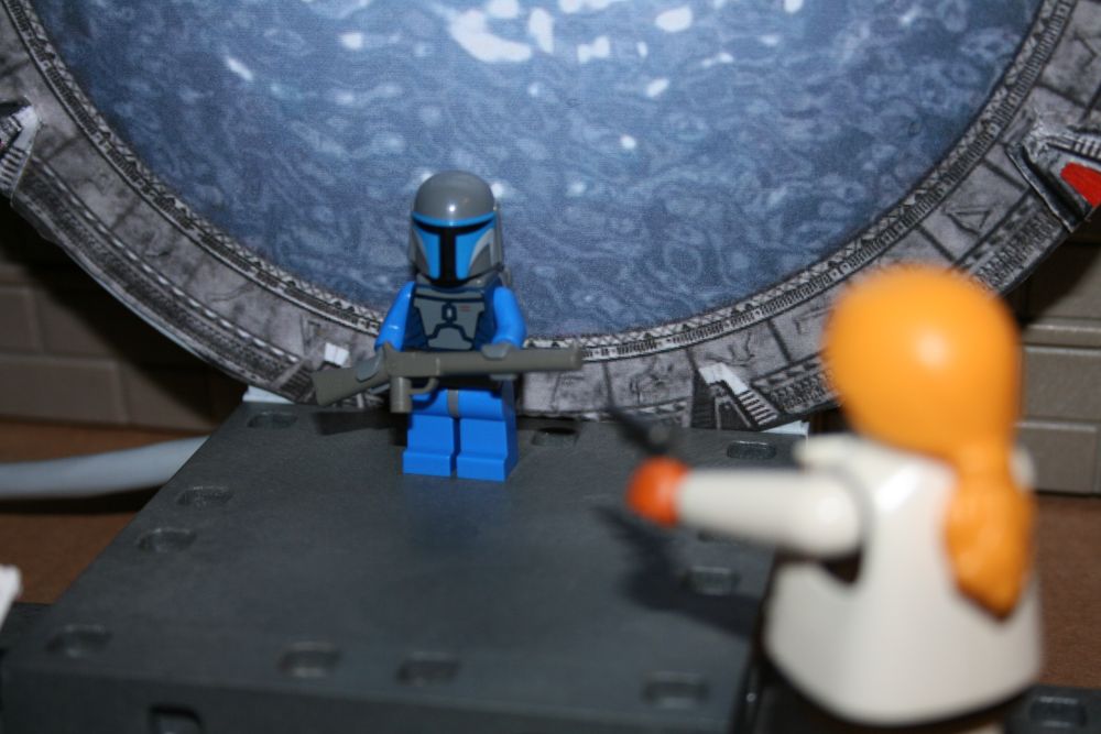 und tatsächlich wenige Sekunden später kam ein Mandalorianer durchs Tor, mit einem Verpinen-Scharfschützengewehr im Arm