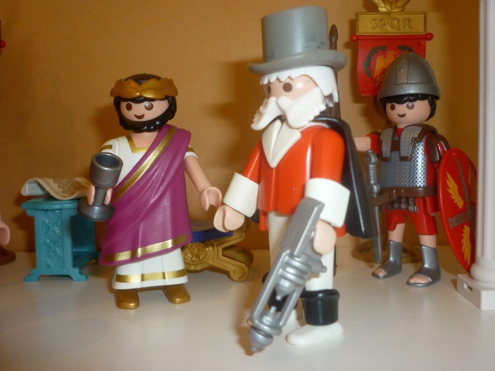 "AVE CÄSAR, ich bin Eusebius, Doktor Eusebius, Wissenschaftler und Mediziner in meinem Land. Meine charmante Begleitung ist Frau Weiß, ihreszeichens ebenso Wissenschaftler und der Dritte im Bunde ist unser treuer Begleiter, der Winzer Weissnix!"