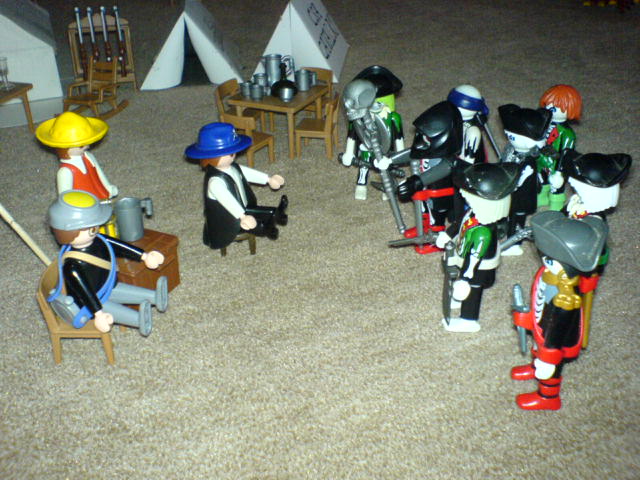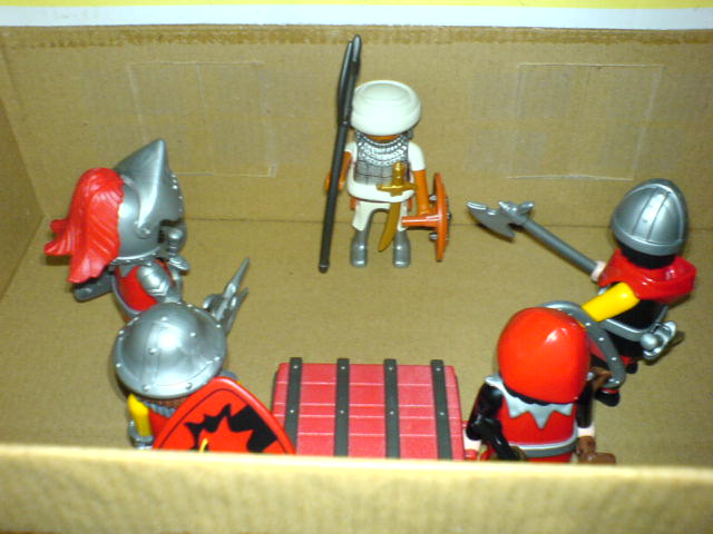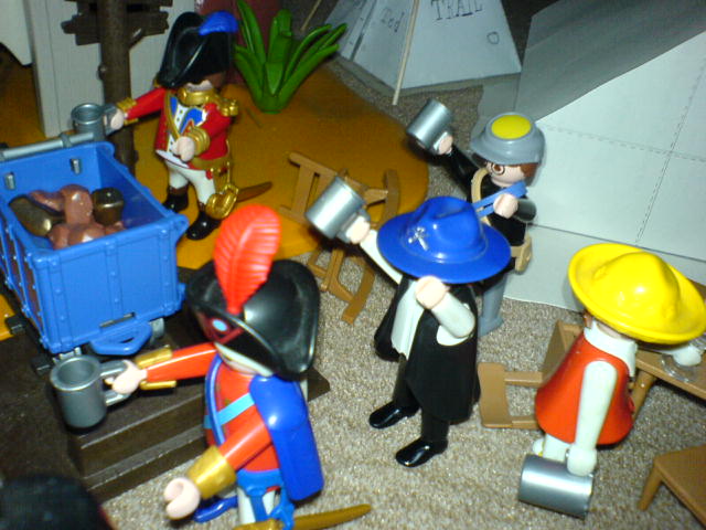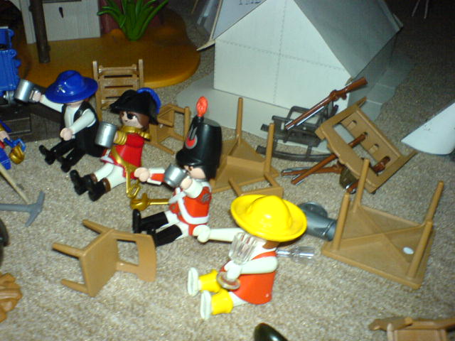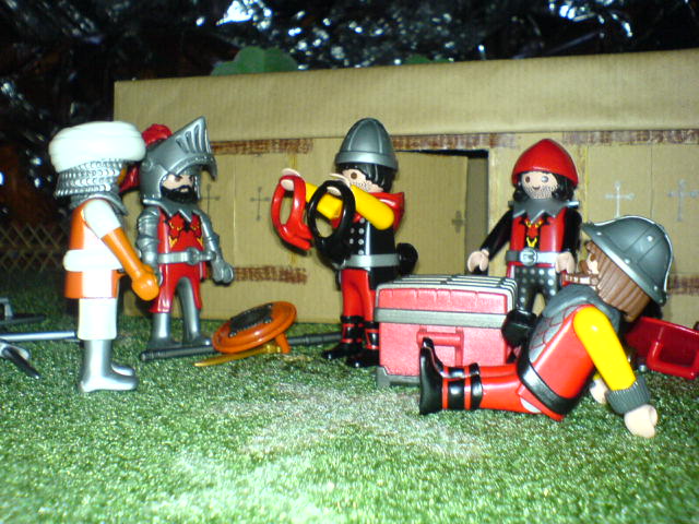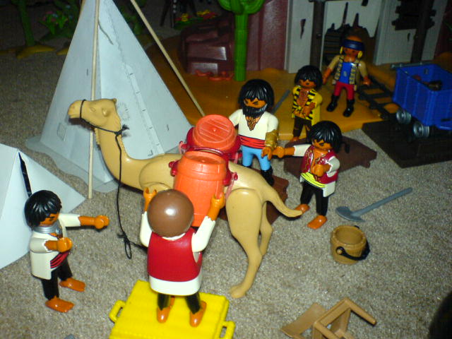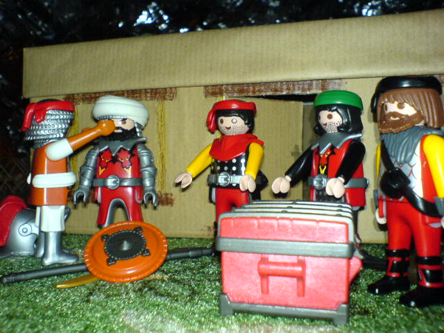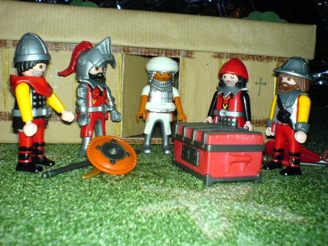 "Ihr seid hier im geheimen Hauptquartier der Befreiungsfront von Palästina. Ich bin Scheich Awar Achwas. Und wer seid Ihr???" "Wir sind die Garnison von Stehdumrum, und habe noch 'ne Rechnung offen.""Dann lasst uns ein Bündnis schließen. Ich habe auch eine Rechnung mit dem Earl of grey offen. Ihr helft mir Schulden eintreiben, und ich dann Euch." "Lasst uns in das Lager schleichen und die dortigen Fellachen aufwiegeln. In der Verwirrung des Aufstandes können wir dann Schätze, Kulturgüter und Weiber rauben." "Die Waffen bleiben hier. Wir überlassen den Fellachen das Kämpfen.""Dann brauchen wir aber Verkleidung." "Mal schauen was in dieser Truhe ist." *Quietsch, knarz*