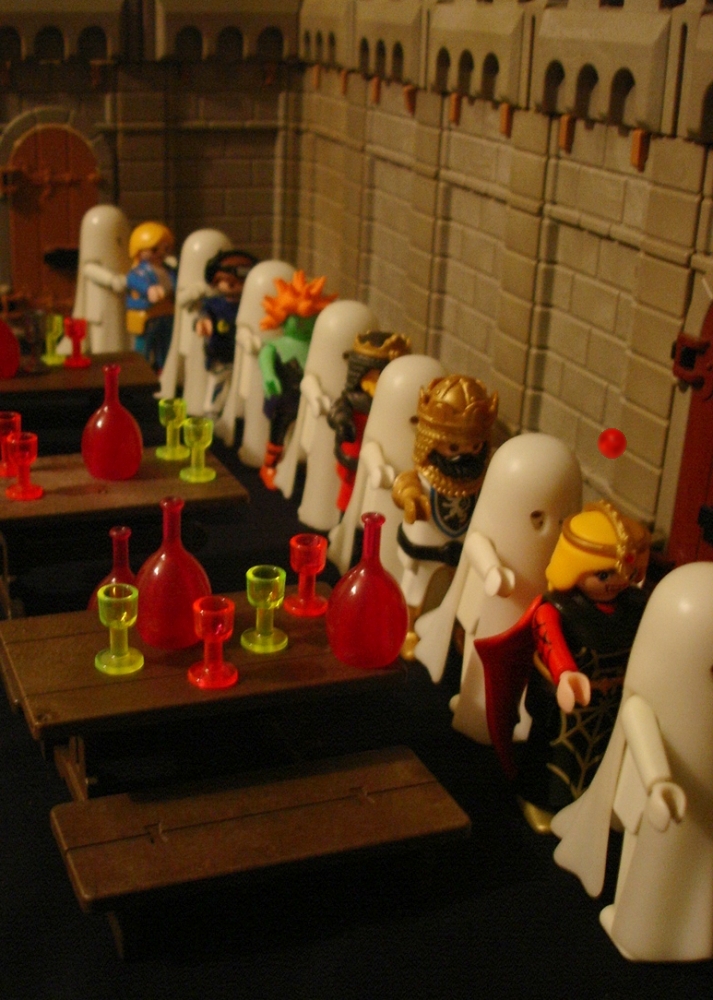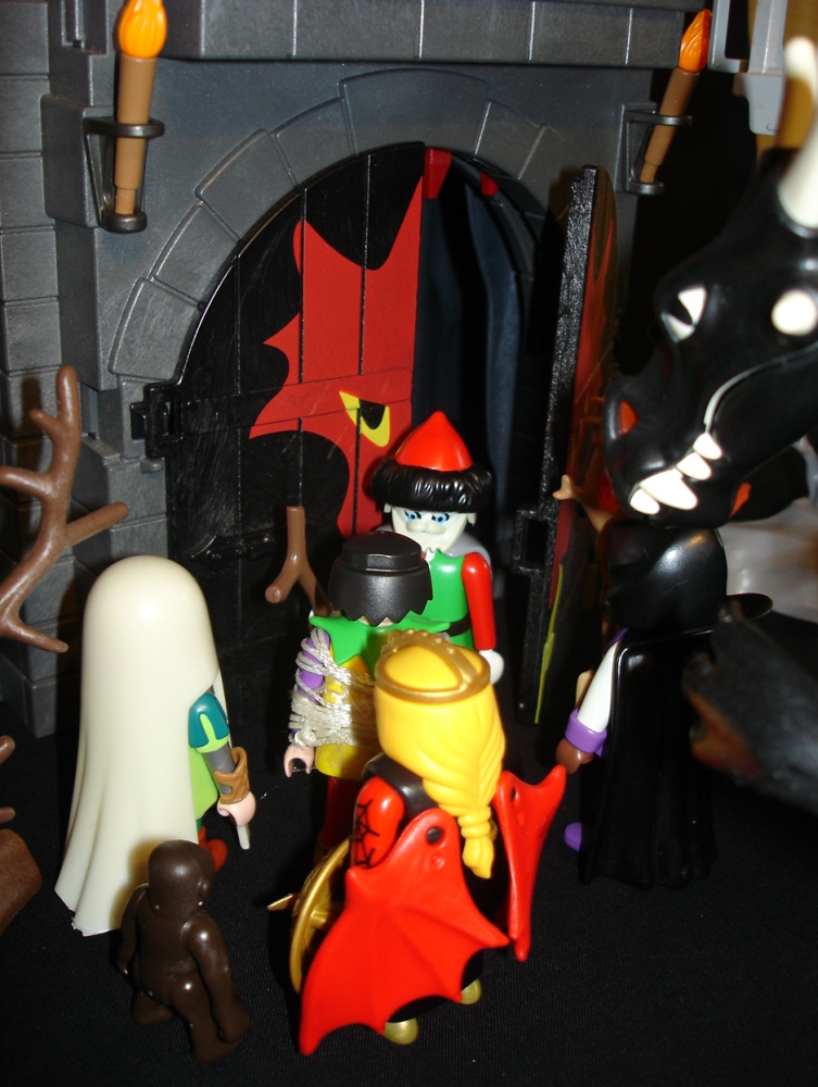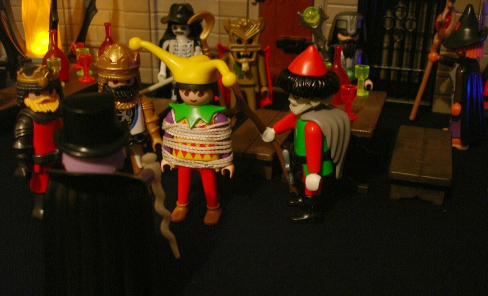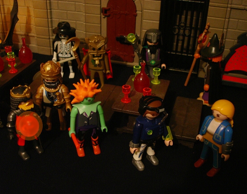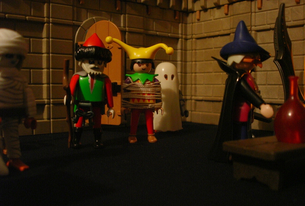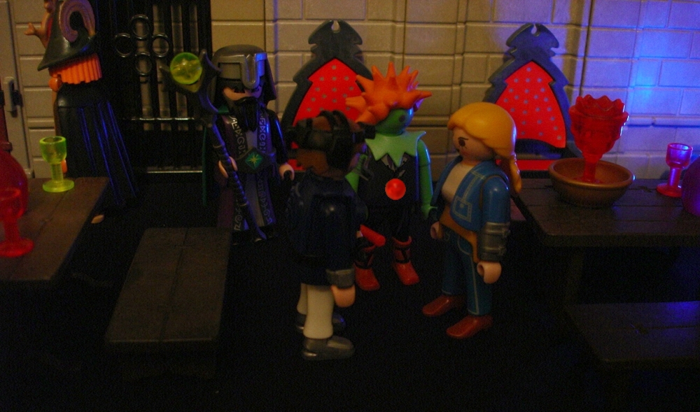 Knusperkeks: "Die Kräuterhexe - sie ist übrigens Vegetarierin und deshalb nur der Etiquette halber eingeladen - hat gesagt, der Duplikator ist nicht in der Burg!"